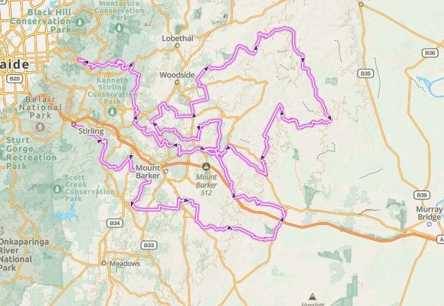 This Adelaide Hills gravel loop starts in Crafers and heads Gorge Road toward Cudlee Creek. From Cudlee, the route continues through Lobethal, where the ride transitions decisively from sealed roads to a mix of well-formed gravel, hard pack, loose sections, and occasional rocky surfaces.